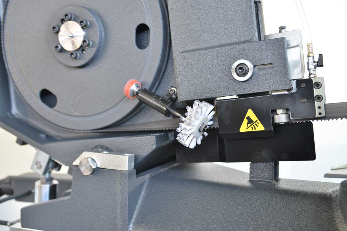 Double sided miter semi automatic bandsaw machine. ECT982