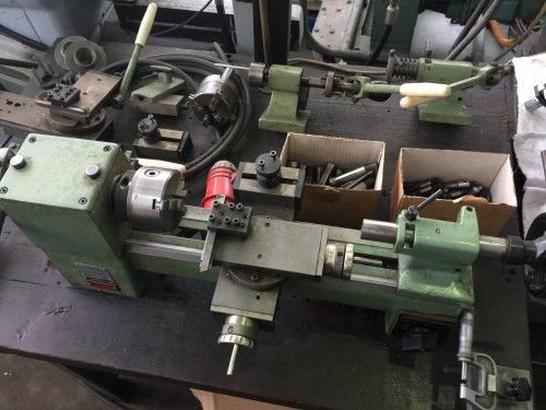 . Mechanic Lathe Fabr VEB mechanization Leipzig Type DMT 160/300 Masch 4197 Year 1977 Technical data:. Center height 80 mm Swing over bed 160 mm turning diameter over slide 84 mm turning length 300 mm spindle bore 18 mm Power supply 220 V Dimensions with stand 650 x 320 x 1070 mm with – built collet chuck with collet set – crank cross Support – leverage cross Support – 3-jaw chucks with receiving – 4-jaw chucks with recording – crank tailstock – collet set – steel edition – 2 rear steel holder – base used, in good condition